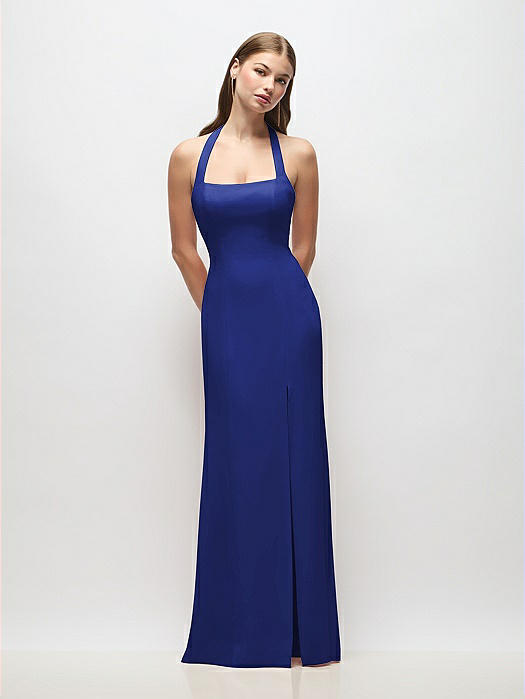 Tie Halter Open Back Trumpet Gown in cobalt blue