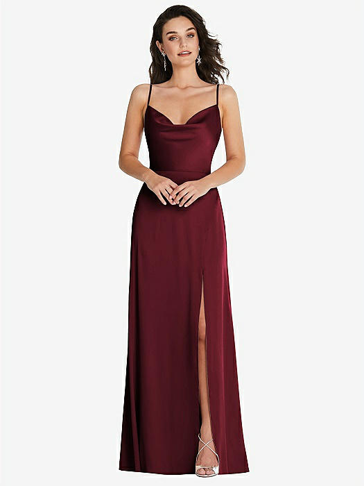 Cowl-Neck A-Line Maxi Dress with Adjustable Straps in cabernet