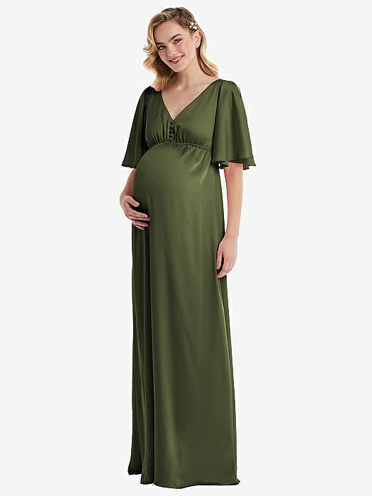 Flutter Bell Sleeve Empire Maternity Dress in olive green
