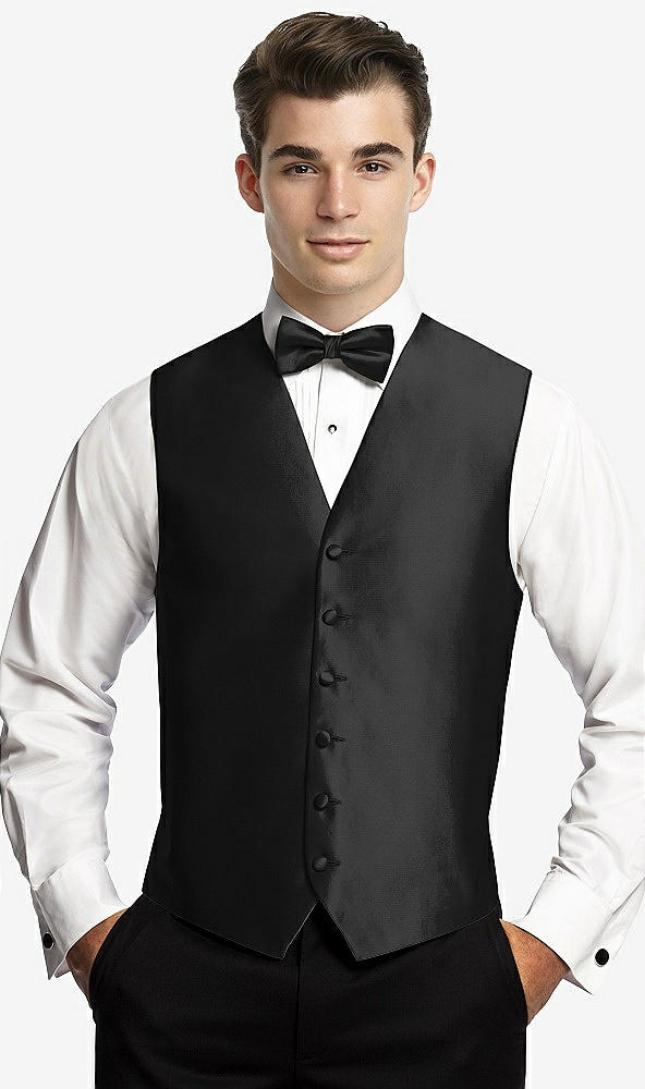 Yarn-Dyed 6 Button Tuxedo Vest by After Six in Black