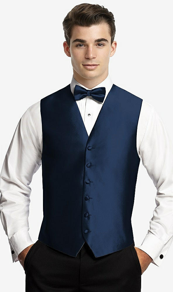 Yarn-Dyed 6 Button Tuxedo Vest by After Six in Midnight Navy
