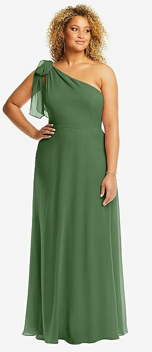 Draped One-Shoulder Maxi Dress with Scarf Bow in vineyard green