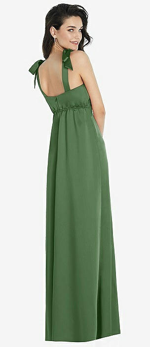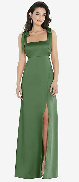 Flat Tie-Shoulder Empire Waist Maxi Dress with Front Slit in vineyard green