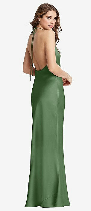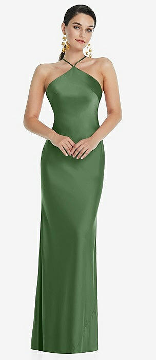 Diamond Halter Bias Maxi Slip Dress with Convertible Straps in vineyard green