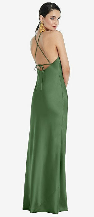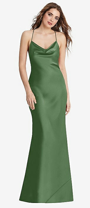 Cowl-Neck Criss Cross Back Slip Dress in vineyard green
