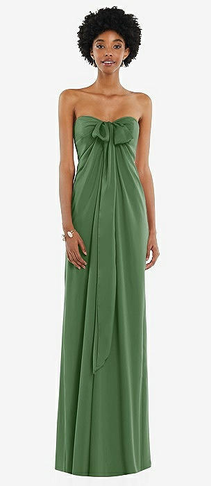 Draped Satin Grecian Column Gown with Convertible Straps in vineyard green