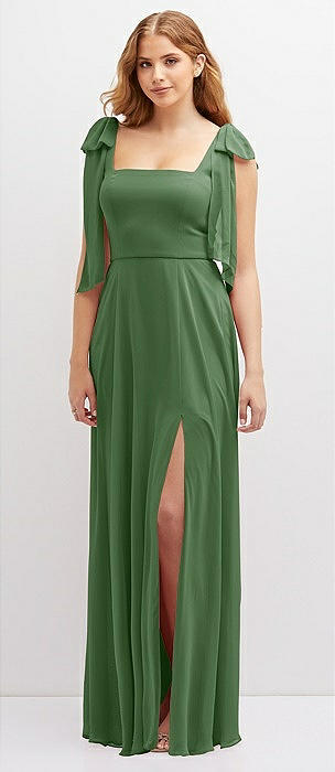 Bow Shoulder Square Neck Chiffon Maxi Dress in vineyard green