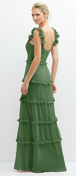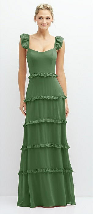 Tiered Chiffon Maxi A-line Dress with Convertible Ruffle Straps in vineyard green