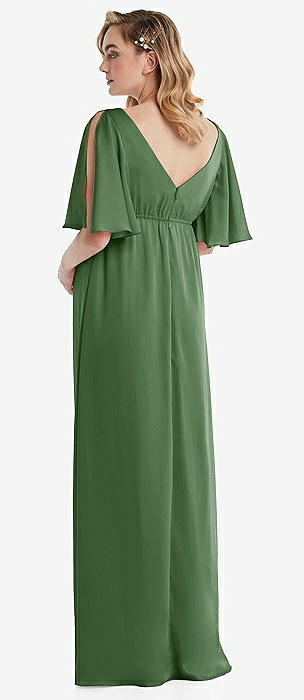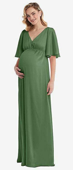 Flutter Bell Sleeve Empire Maternity Dress in vineyard green