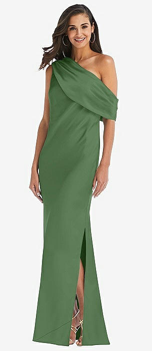 Draped One-Shoulder Convertible Maxi Slip Dress in vineyard green