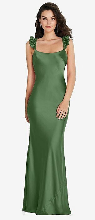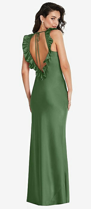 Ruffle Trimmed Open-Back Maxi Slip Dress in vineyard green