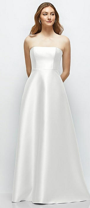 Strapless Satin Drop Waist Gown with Full Skirt in white