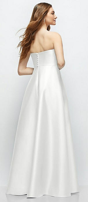 Strapless Satin Gown with Full Skirt and Covered Buttons at Back in white