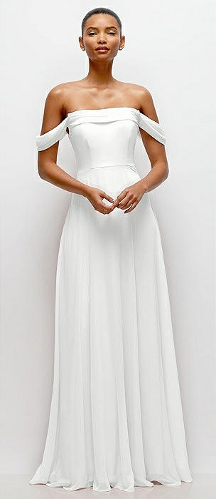 Off-the-Shoulder Draped Neckline Maxi Dress in white