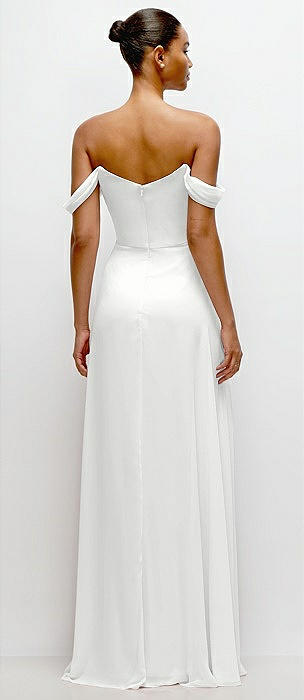 Off-the-Shoulder Cuff Trumpet Gown with Front Slit in white