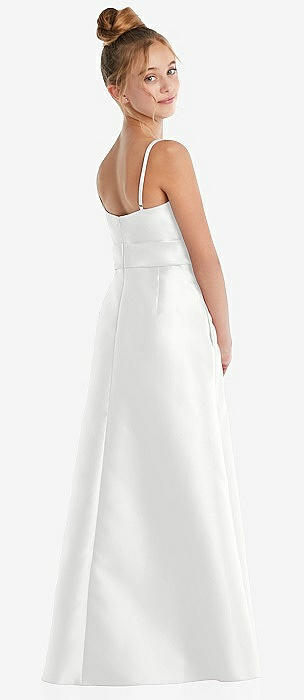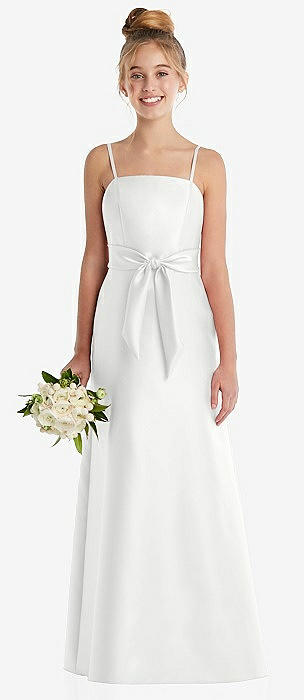 Spaghetti Strap Satin Junior Bridesmaid Dress with Mini Sash in white