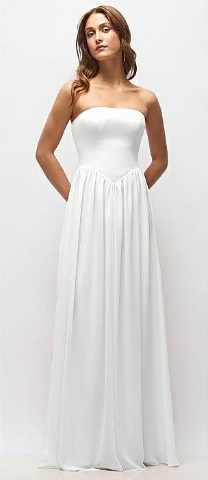 Strapless Basque Drop Waist Chiffon Maxi Dress with Shirred Skirt in white