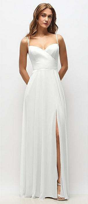 Wrap Bodice Chiffon Maxi Dress with Adjustable Spaghetti Straps in white