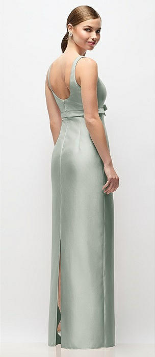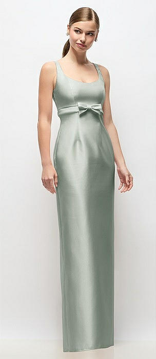 Scoop Neck Satin Column Maxi Dress with Bow at Empire Waist in willow green