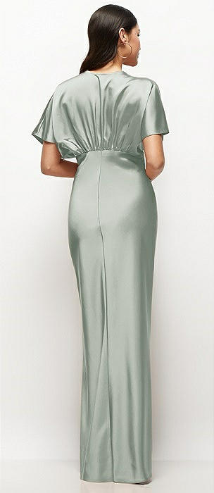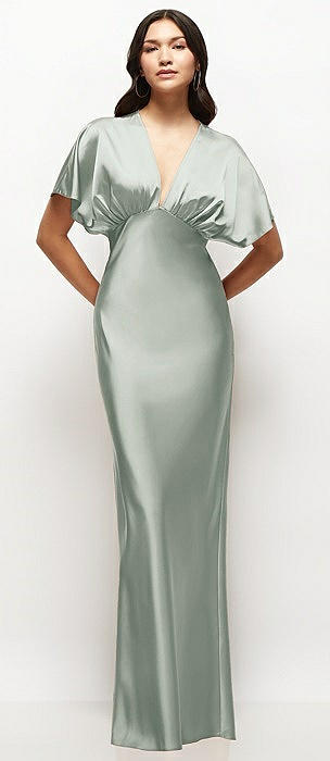 Plunge Neck Kimono Sleeve Satin Bias Maxi Dress in willow green