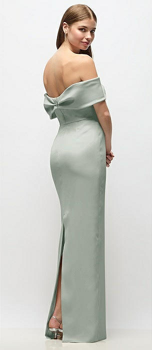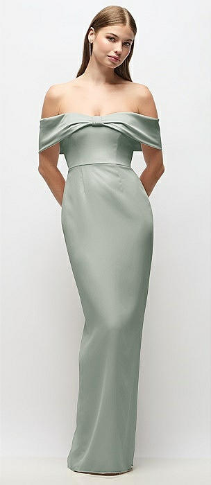 Off-the-Shoulder Crepe Column Maxi Dress with Bow-Pinch Detail in willow green