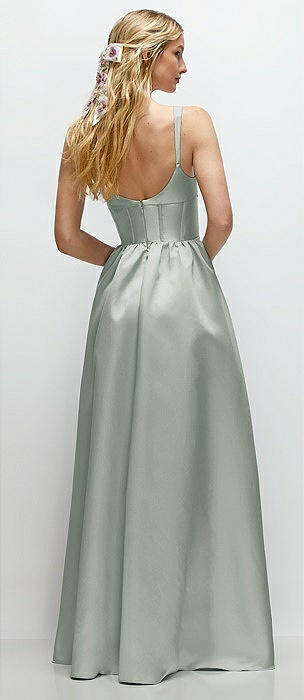Scoop Neck Inset Corset Satin Maxi Dress with Pockets in willow green