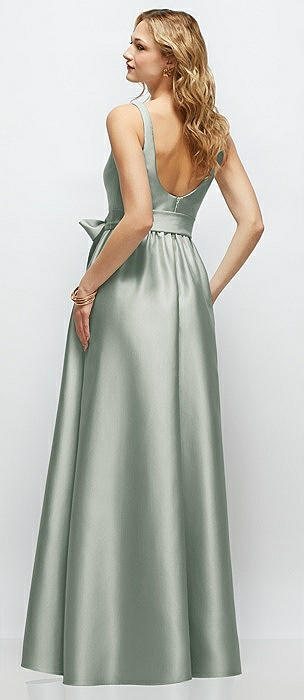 Strapless Satin Drop Waist Gown with Full Skirt in willow green