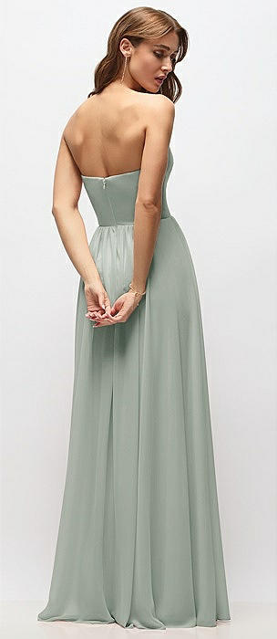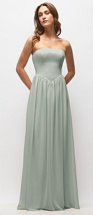 Strapless Basque Drop Waist Chiffon Maxi Dress with Shirred Skirt in willow green